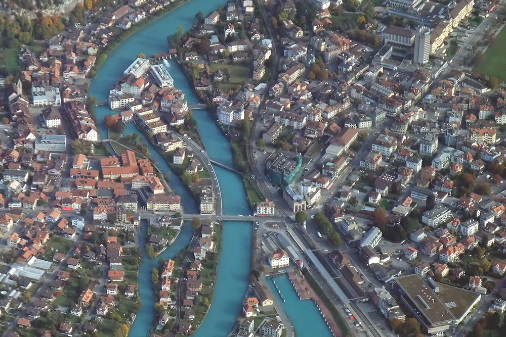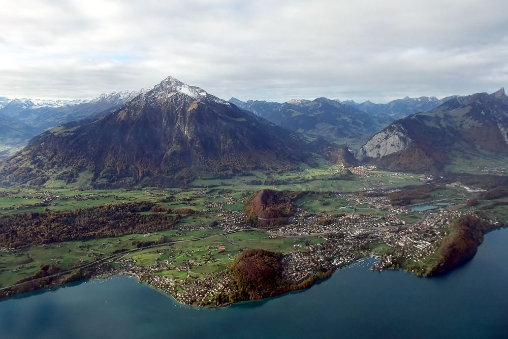 Über Interlaken, rechts oben das Viktoria Jungfrau und rechts unten die Migros (welche ich bereits bei der Eröffnung 2002 schurnalistisch begleitete).